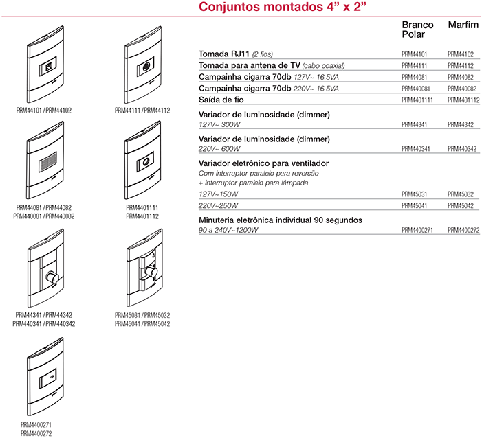 • Novos conjuntos montados com placa 4" x 2".