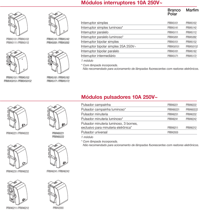 6 - Interruptores e pulsadores com contatos de prata (fixo e móvel):