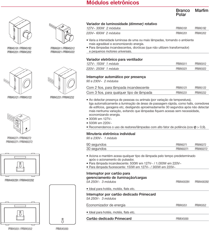 • Interruptor por cartão para gerenciamento de iluminação.